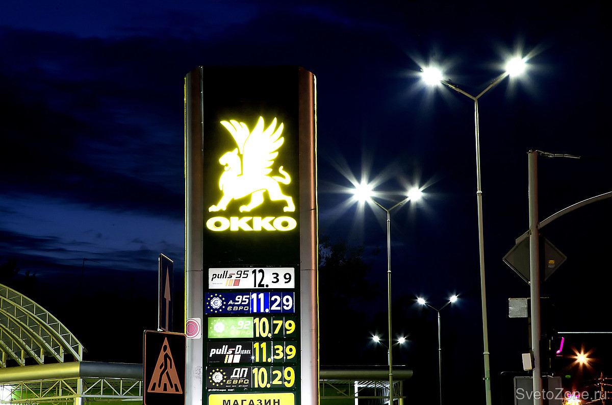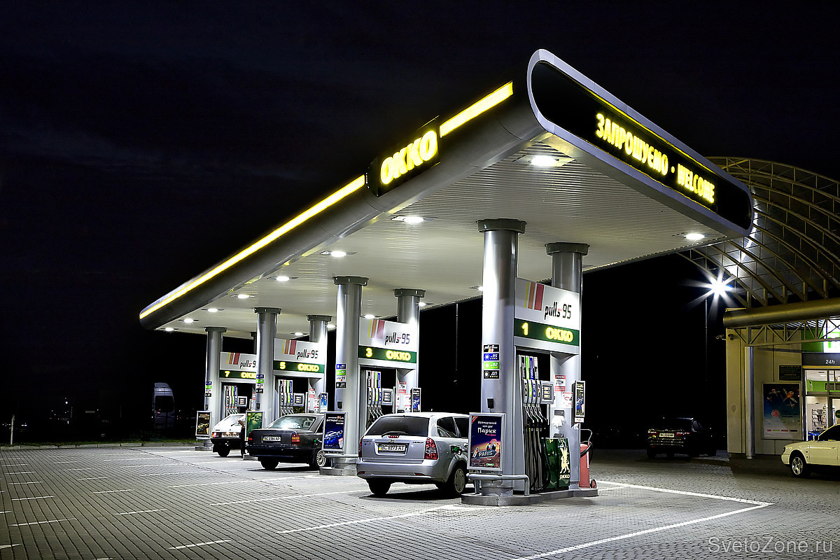 Освещение парковок и топливораздаточной зоны на АЗС ОККО, Украина светодиодными светильниками