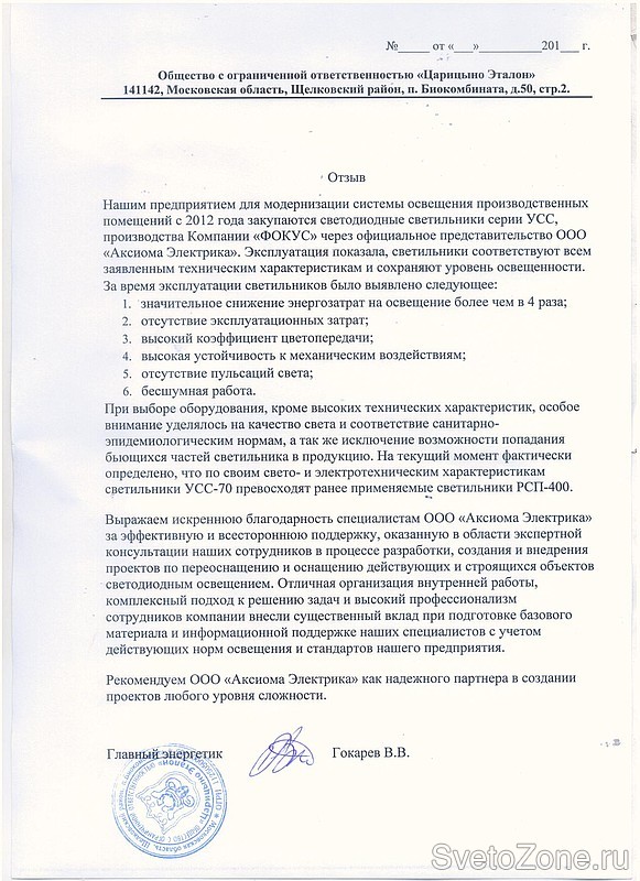 На предприятии ежегодно проводится работа по модернизации оборудования: запущены современные производственные линии сервировочной нарезки, установлены новые упаковочные установки, климатические и термические камеры. Являясь одной из крупнейших в отрасли, группа компаний «Царицыно» уделяет большое внимание внедрению современных технологий на свои объекты. Так, на заводе ООО «Царицино Эталон» были внедрены светодиодные светильники серии УСС-70, с потреблением 75 Вт. Они заменили источники света РСП-400 с лампами ДРЛ.