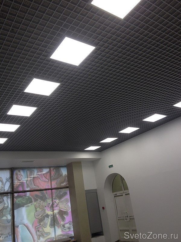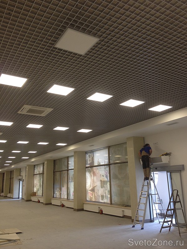 Освещение торгового центра "Подмосковье" дизайнерскими ультратонкими панелями ОфисЛайн-Дизайнер 40Вт производства ООО КимАС.