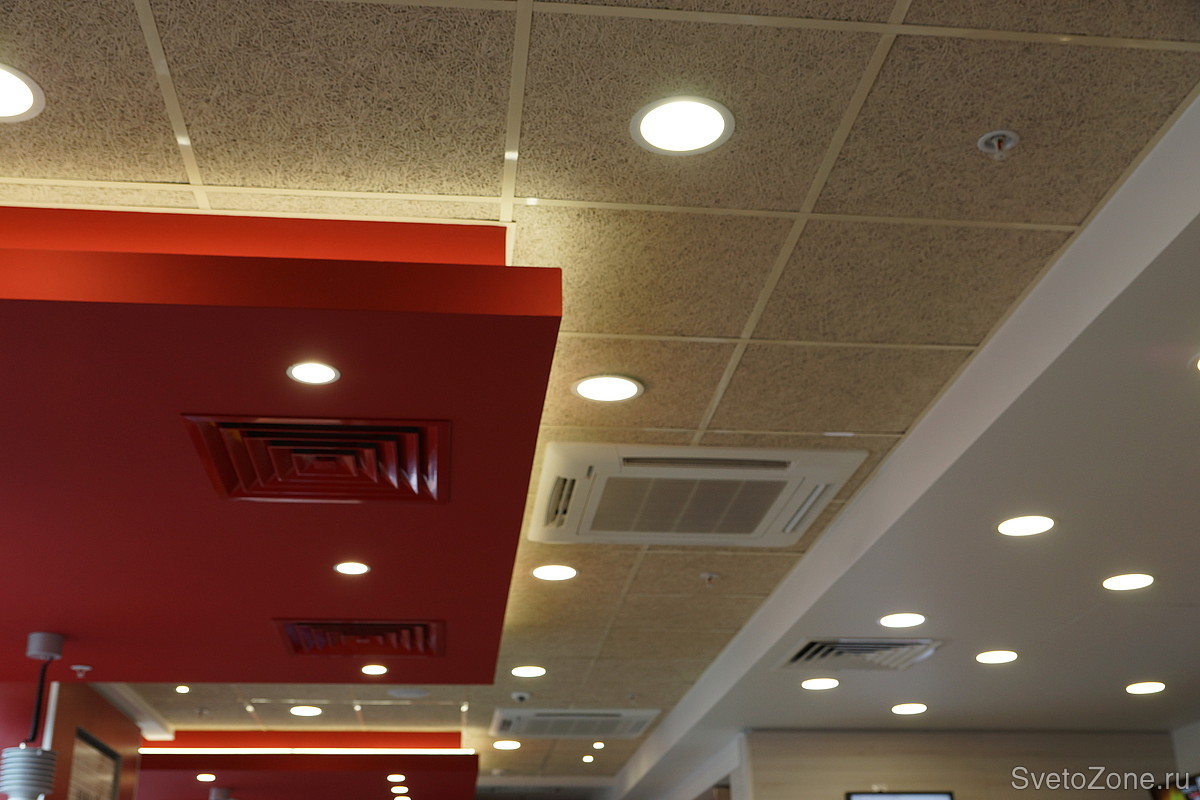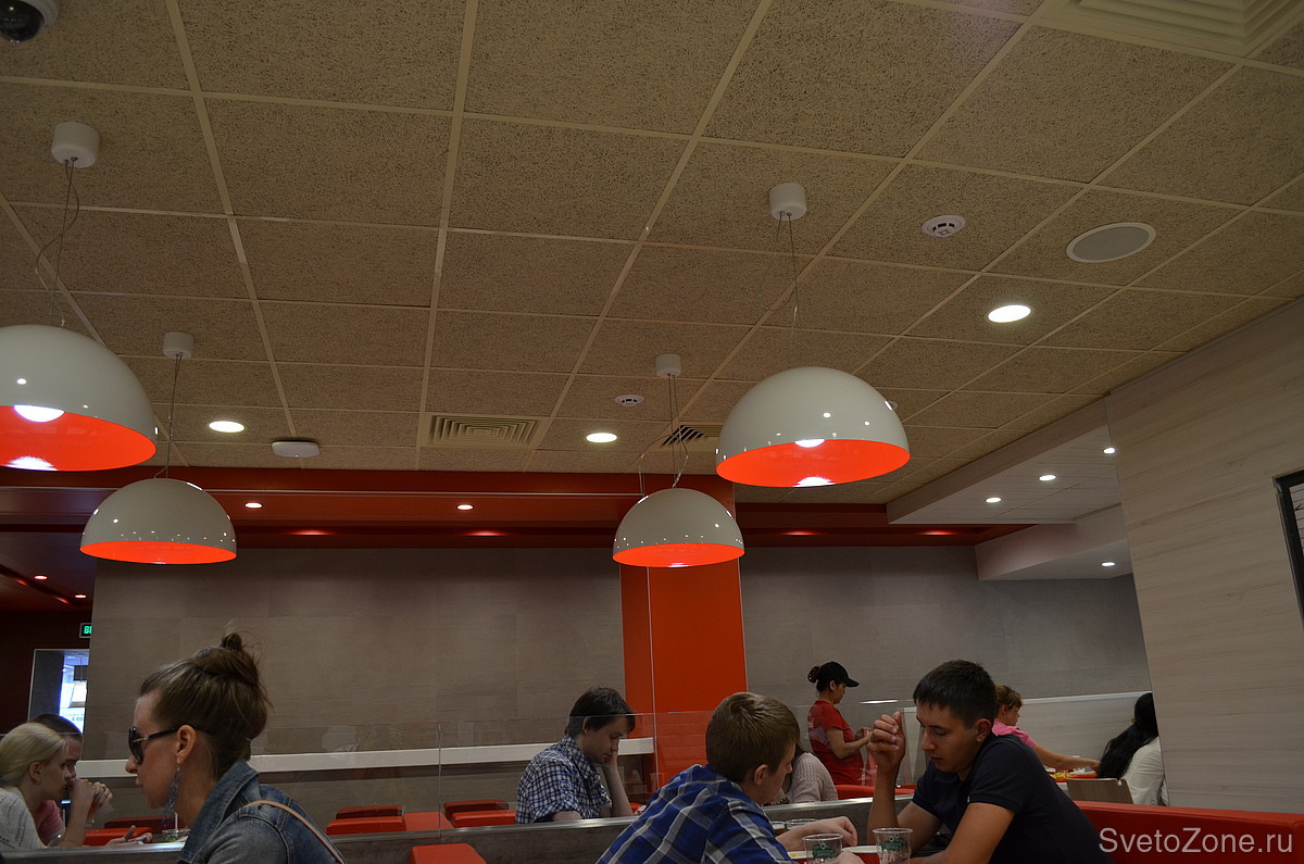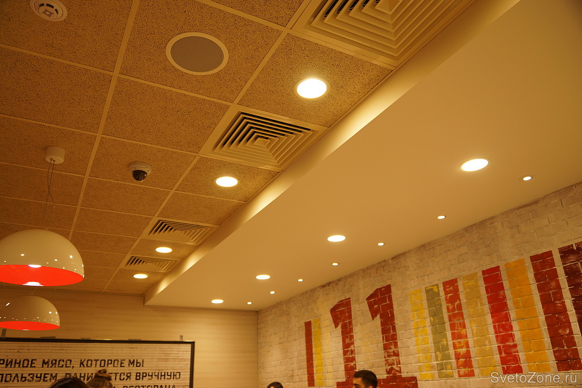 Для освещения сети ресторанов использовались новые светильники «downlight» серии «XLD-DL». Корпуса светильников были окрашены в цвета согласно дизайн-проекту. Для создания теплой и уютной атмосферы в ресторанах выбран теплый белый цвет свечения.