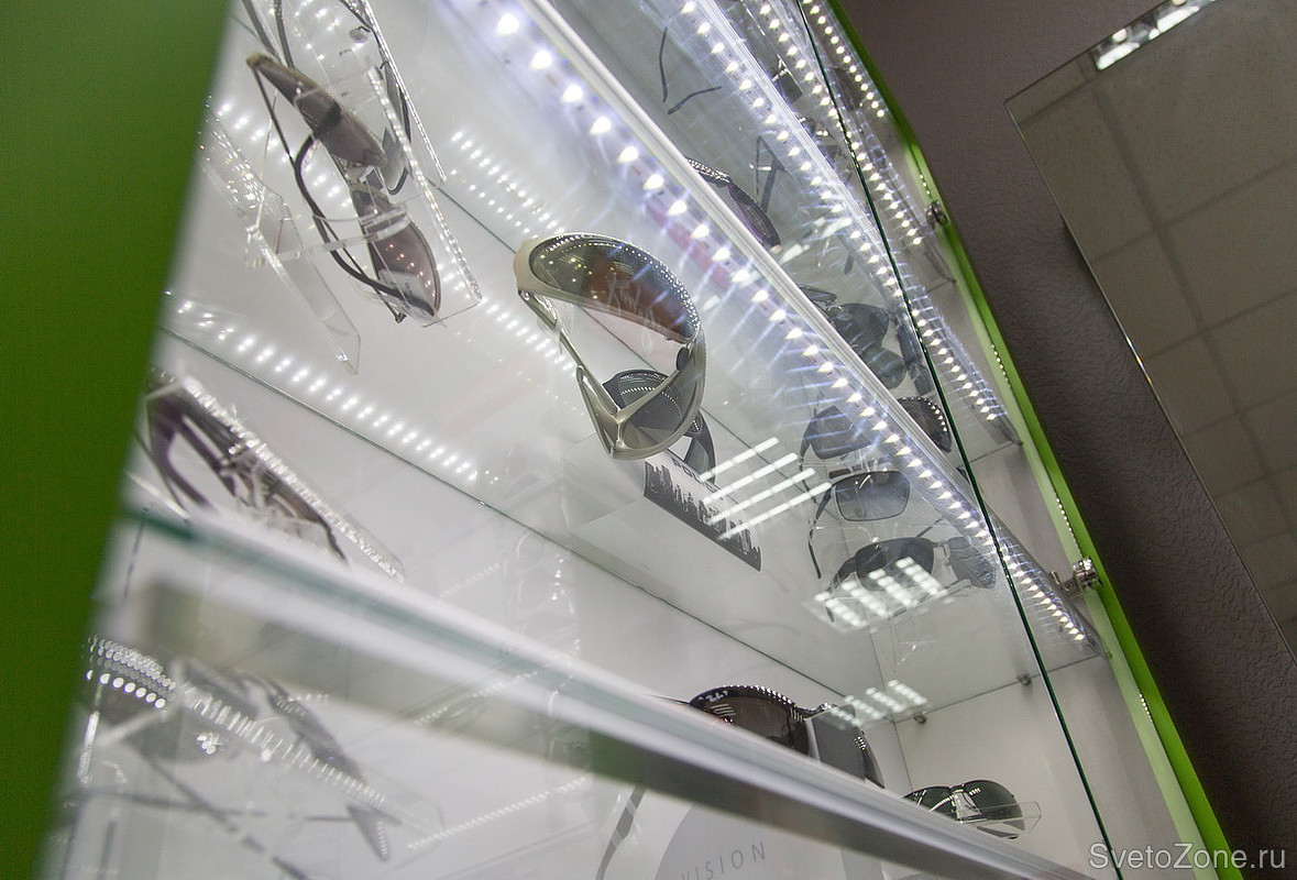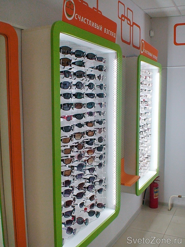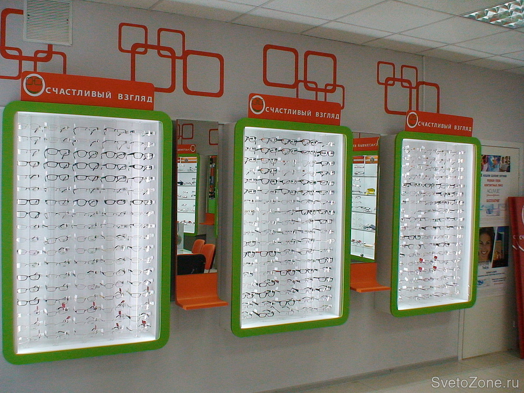 Освещение оптики светильниками Просвет произведено в более, чем восьмидесяти салонах СЧАСТЛИВЫЙ ВЗГЛЯД в Санкт-Петербурге и других городах России. Были разработаны типовые модели светодиодных светильников для данного торгового оборудования. |