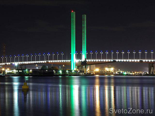 Построенный в Мельбурне в 1999 году, мост Bolte Bridge соединяет два берега над рекой Ярра (Yarra). Два пилона серебристого цвета высотой 140 метров расположены с каждой стороны дорожного полотна прямо по самому центру гигантского пролета.