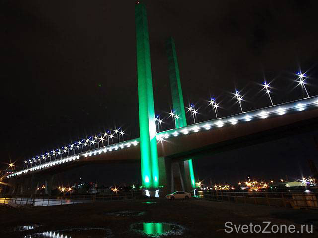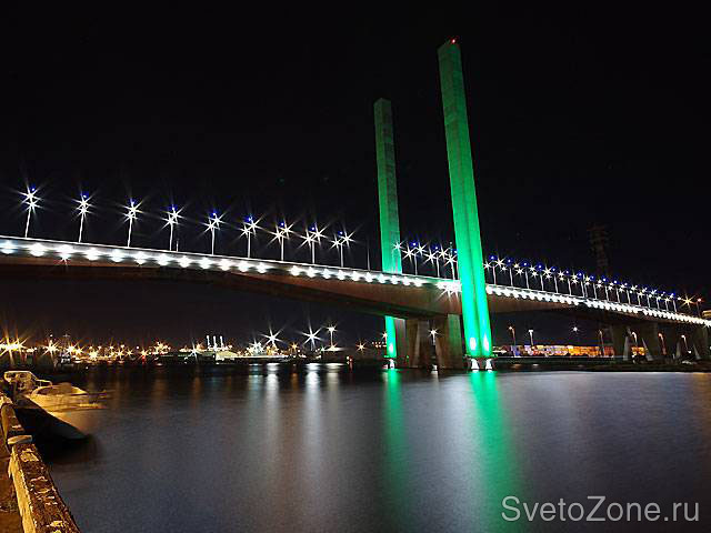 Приборы установлены у снования каждой из опор таким образом, чтобы минимизировать риск ослепления водителей и избежать эффекта светового загрязнения. Достигнутый визуальный результат, а также снижение эксплуатационных расходов – хороший пример создания современного проекта освещения, учитывающего самые различные аспекты – нетривиальность решения, надежность выбираемого оборудования, экономичность, эстетичность, энергетическую эффективность, назначение, социальную и культурную значимость.
