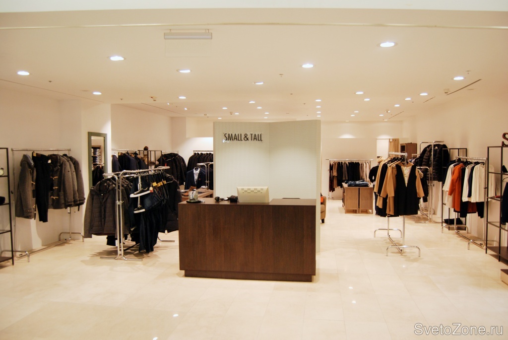 В магазине Small & Tall в ТЦ "Лотте Плаза", нашей командой была проведена работа по освещению.