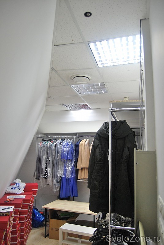 Подсобное помещение было освещено с помощью светильников с люминисцентными лампами CCFL. |