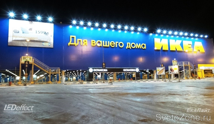 Компания «ЛЕД-Эффект» совместно с дилером компанией «ЕкаЛайт» приняла участие в освещении прилегающих территорий магазина «ИКЕА» в Екатеринбурге.
