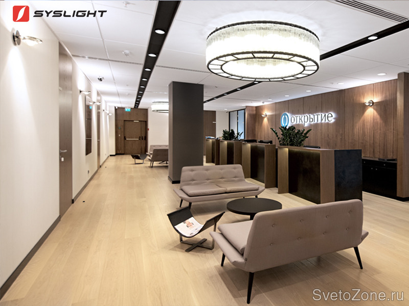 Специалистами компании "Система Света" для освещения VIP пространства офиса банка "ФК Открытие" был выполнен комплекс работ: