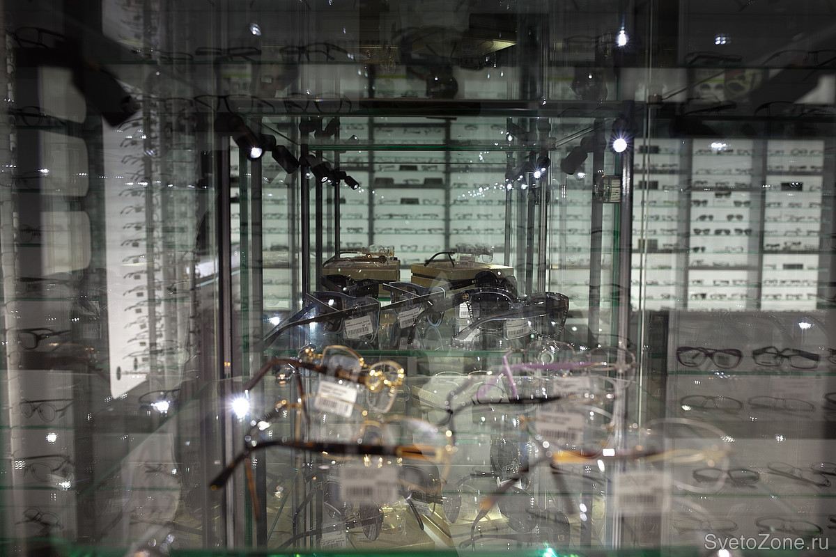 Совместно с партнерской компанией «Дизайн-Вектор», специализирующейся на комплексном оснащении торговых залов аптек и оптик, в витринах оптики была установлена система светодиодной подсветки XLight Cabinet.