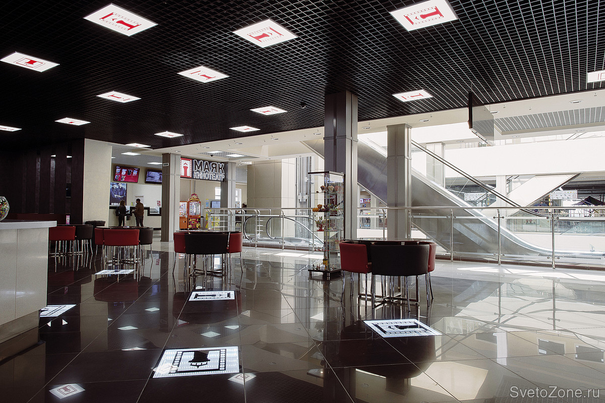 Благодаря тому, что светодиодные светильники имеют длительный срок службы, дизайнеры смогли воплотить в жизнь смелый проект и разместить светильники VARTON Грильято не только на потолке но и на полу, под закаленным стеклом. Проект получился очень интересным. |