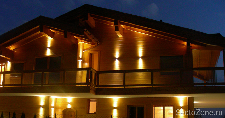 В данном проекте было выполнено архитектурное освещение коттеджа и сделана выборочная подсветка ландшафта. Перед нами стояла задача сделать стильную, но яркую подсветку дома. За счет вертикального акцентирования освещения фасада и кровли мы добились визуального увеличения высоты загородного дома. Дополнительные прожекторы осветили территорию у входа в дом, создав безопасную и комфортную зону. Светильники, освещающие деревья, кустарники или размещенные в цветниках, тонко и гармонично выделили наиболее живописные места ландшафта в вечернее время, создавая особенное настроение.