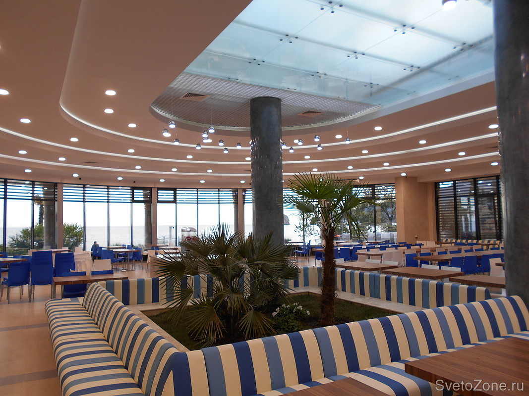 Обновлено освещение в здании столовой лагеря «МОРСКОЙ», было установлено более 200 светодиодных светильников различного назначения: