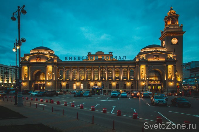 Информация об объекте: Киевский вокзал (до 1934 года — Брянский вокзал) — пассажирский терминал станции Москва-Пассажирская-Киевская, один из девяти железнодорожных вокзалов Москвы. Вокзал сооружён в 1914—1918 годах по проекту архитекторов Ивана Рерберга и Вячеслава Олтаржевского в стиле неоклассицизма с элементами ампира. Ежемесячно вокзал обслуживает более 600 тысяч пассажиров в поездах дальнего следования и 1,5 миллиона человек в пригородных электричках. Общая площадь Киевского вокзала более 36 тысяч кв. метров. Пассажиропоток Киевского вокзала равен более 400 человек/час. |