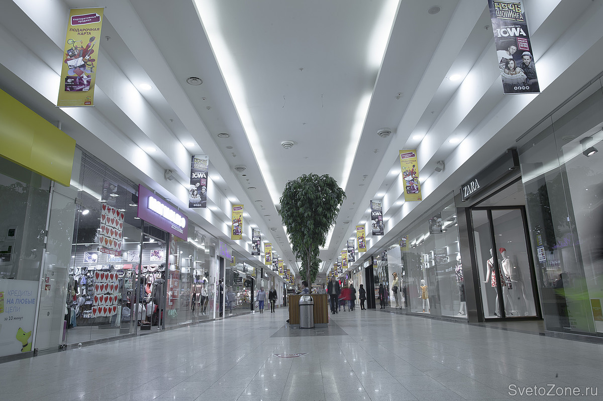 Все это позволило создать правильное освещение торгового центра с ежемесячной проходимостью более 1,5 млн человек. |