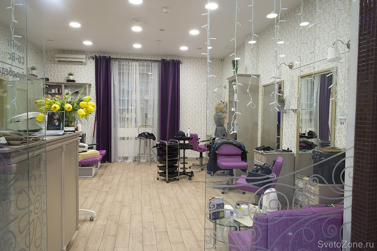 • Светильник серии Даунлайт 30 Вт, 4000 K и 20 Вт, 4000 K в салоне красоты, а так же на ресепшене. |