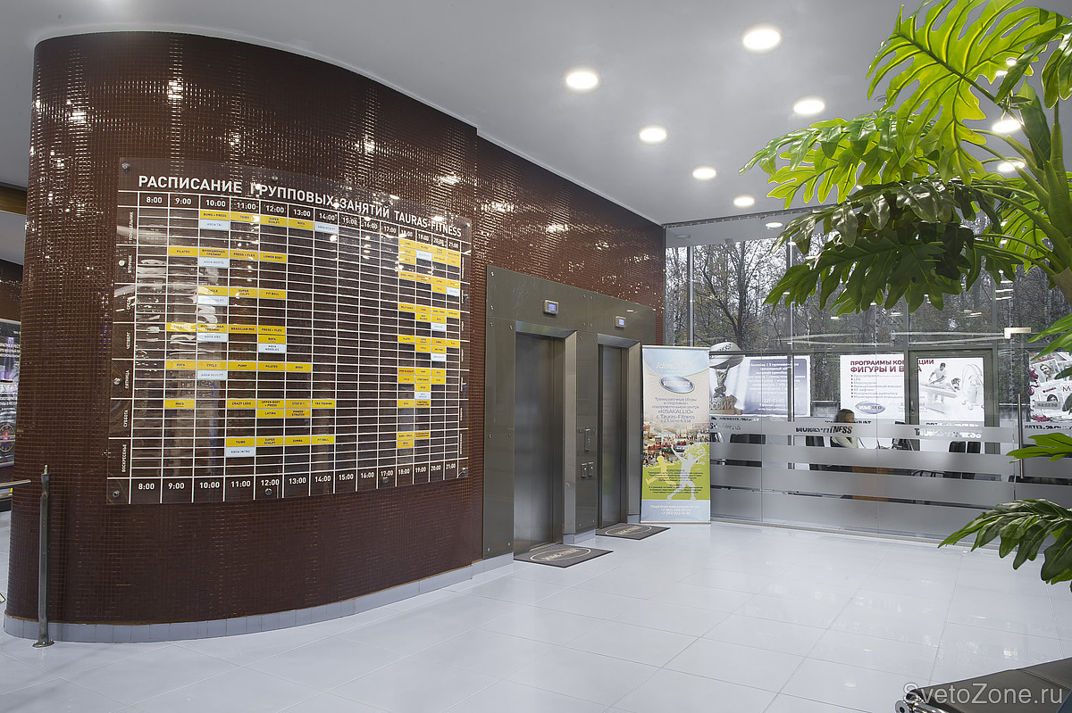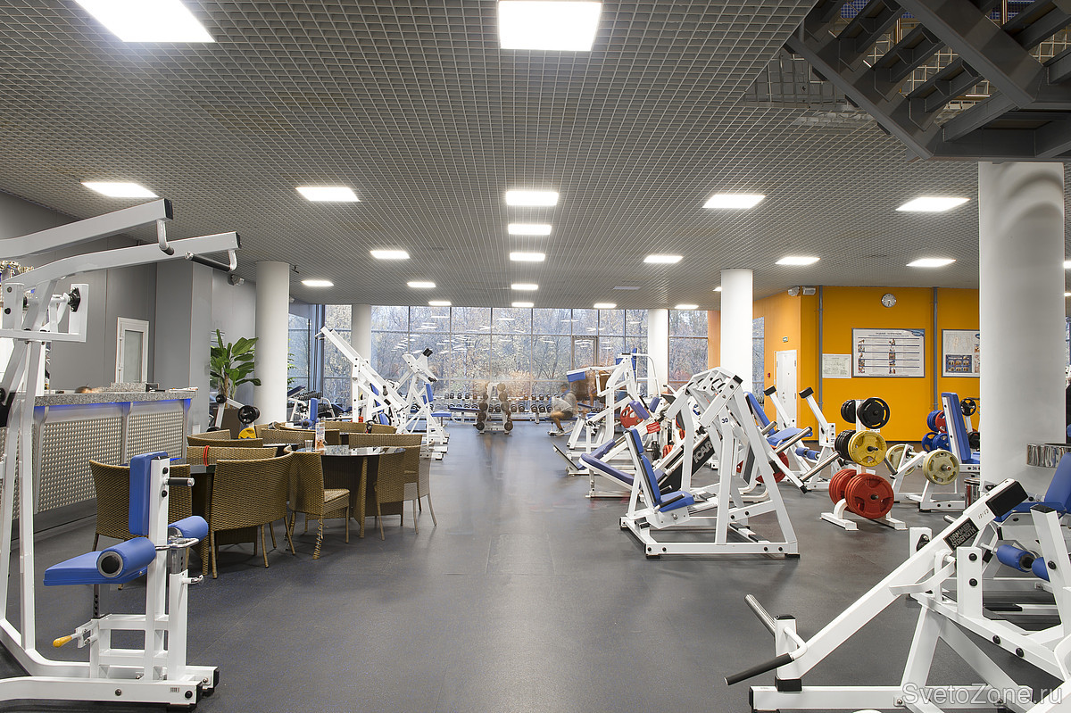 Общая площадь клуба составляет 16000 кв.м., включая бассейн и многофункциональные залы для групповых тренировок. В помещениях подобного типа, где требуется постоянное поддержание светового климата, значительное количество электроэнергии уходит на освещение. Поэтому крайне важно подбирать энергосберегающие светильники. В данном проекте использовались светодиодные светильники VARTON, при чем отдельное внимание обращали на цветовую температуру света. Доказано, что цвет свечения влияет на самочувствие и работоспособность посетителей. Для того, чтобы клиенты чувствовали прилив сил и могли сконцентрироваться на выполнении конкретной задачи необходимо, чтобы создать бодрящее холодное освещение, этого позволили добиться светильники со значением 4000 К и выше.