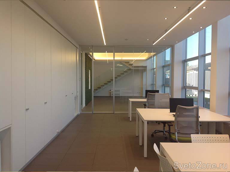 Подобранные для офиса светильники - Up o Down 65 для внутреннего и наружного применения, точечный STA 85 R и линейка Linea 170 и декоративный Blume B - могут работать как по отдельности и освещать зоны и элементы помещения, так и все сразу. В любое время суток, при разной интенсивности света сотрудники офиса сами могут регулировать наиболее комфортную степень освещения. |