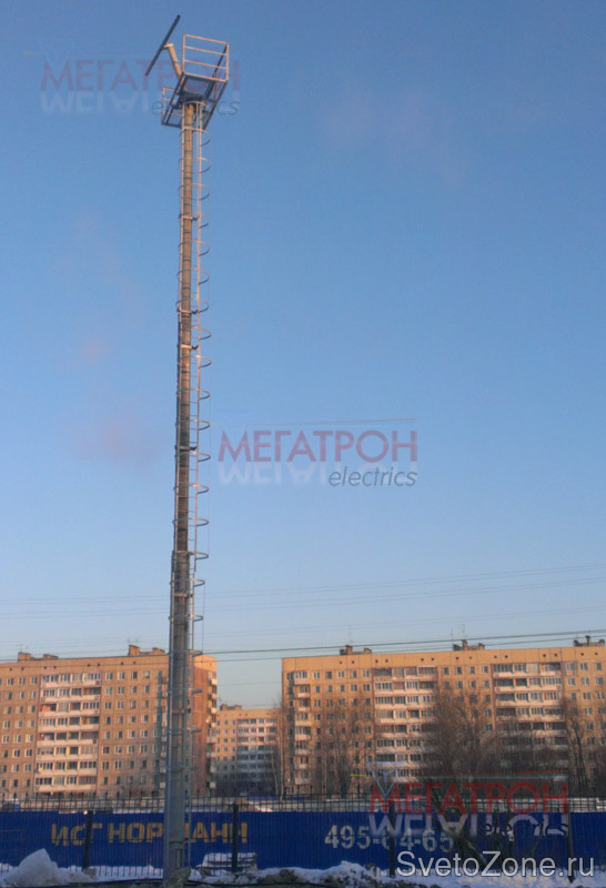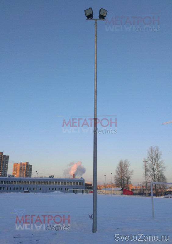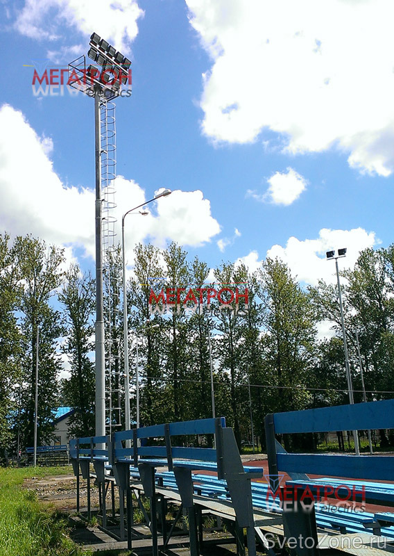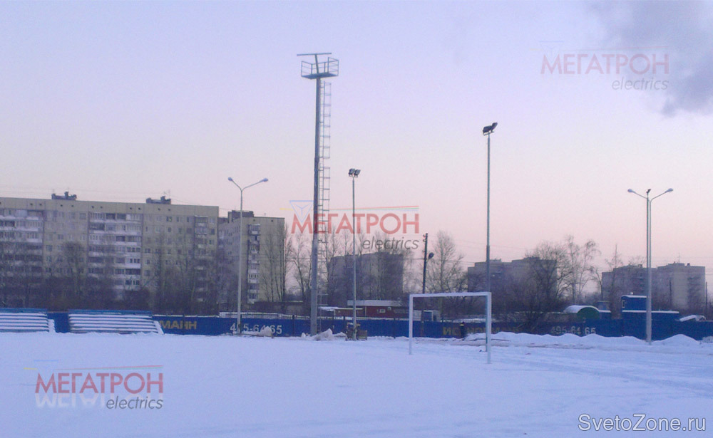 Оборудование стадиона "Искра" мачтами освещения.