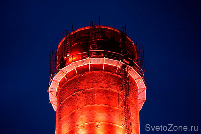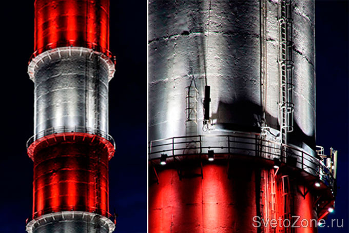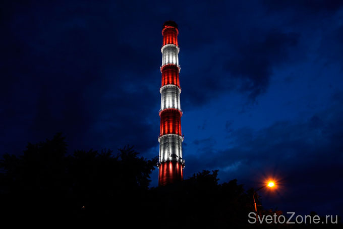В июле 2015 г. в Уфе появилась новая световая доминанта: 150-метровая дымовая труба благодаря архитектурно-художественной подсветке обрела новый яркий облик, заметный практически из любой точки города. Для проекта было использовано более 100 светодиодных светильников компании IntiLED. На каждом ярусе башни по окружности установлены мощные узконаправленные прожекторы IntiSTARK регулируемой яркости. Холодный белый свет прожекторов одинаково точно передает как белые, так и красные участки конструкции. Для освещения основного производственного корпуса использованы полноцветные RGB-прожекторы той же серии. Все оборудование управляется посредством контроллера.