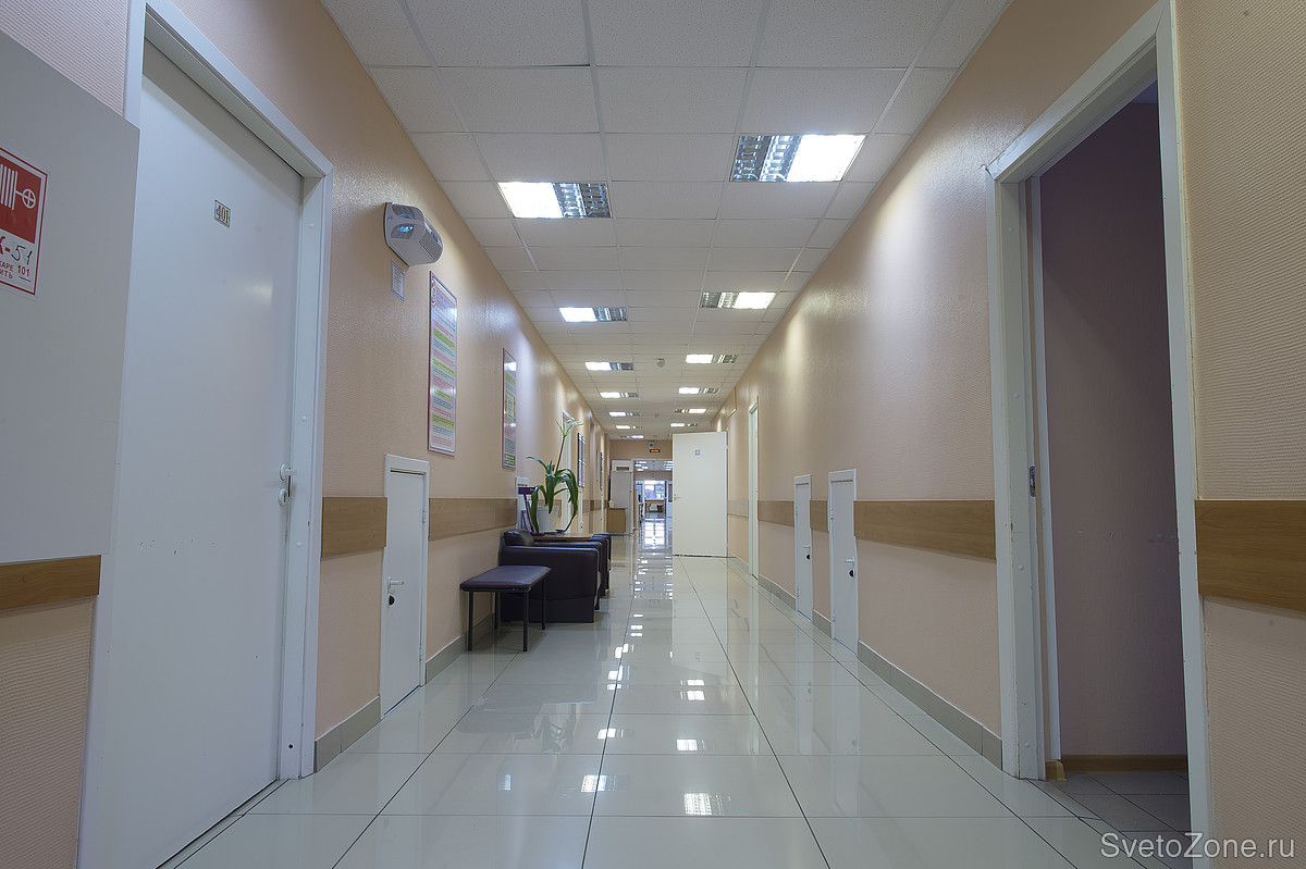 В проекте использовались светильники для чистых и медицинских помещений 595*595*50 мм, 36 Вт, 4000 К; светильники с классом защиты от влаги и пыли IP65 размером 1300*135*100 мм, 36 Вт, 4000 К установлены коридорах ; антивандальные светильники ЖКХ серия IP65 220*90*50 мм, 8 Вт, 4500 К – на лестнице, а светодиодные прожекторы 150W/180W освещают фасад здания. |