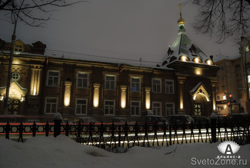 Компанией «Альянс-А» реализован проект по энергоэффективной светодиодной подсветке исторического здания Храм-часовня святителя Стефана Великопермского по адресу: г. Пермь, Комсомольский проспект, 18.