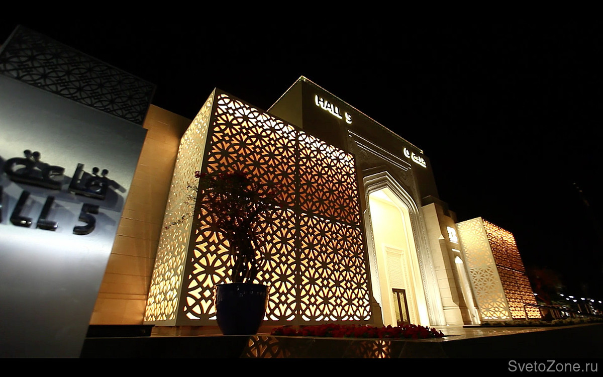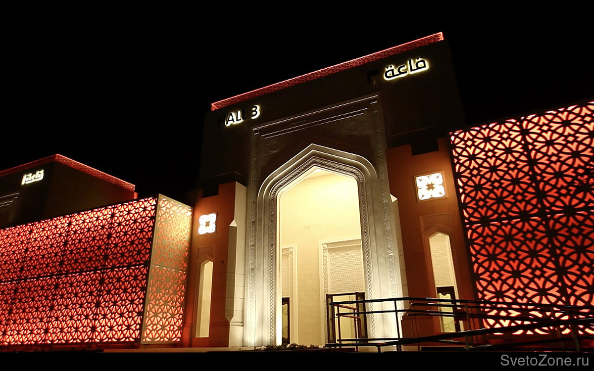 В рекордно короткие сроки специально для проекта Al Rafaa разработан светодиодный светильник линейного типа GRIVEN PARADE X в заказном исполнении. Приборы длиной 500 и 1000 мм оснащены уникальной системой крепления и встроены внутрь специальных декоративных коробов. Светильники оснащены мощными RGB светодиодами и вторичной оптикой "wall wash" (кососвет). Новая оптика обеспечивает наиболее оптимальное распределение светового потока, в то время как сам прибор выполнен с учетом климатических особенностей региона и адаптирован для работы в условиях предельно высоких температур окружающей среды.