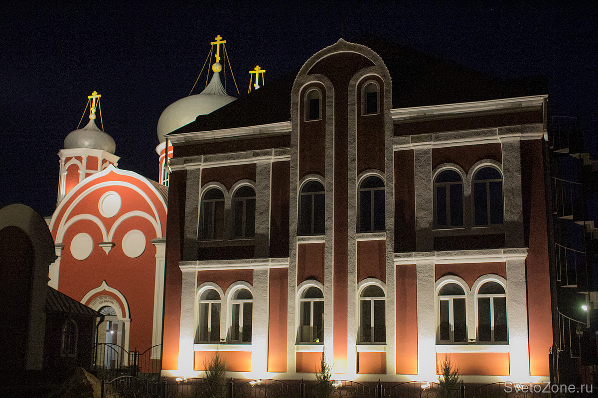 В реализацию проекта архитектурного освещения вошли 4 отдельно стоящих здания, в том числе: здание средней школы №2(бывшее здание женской духовной семинарии) и Воскресной школы при Епархии.