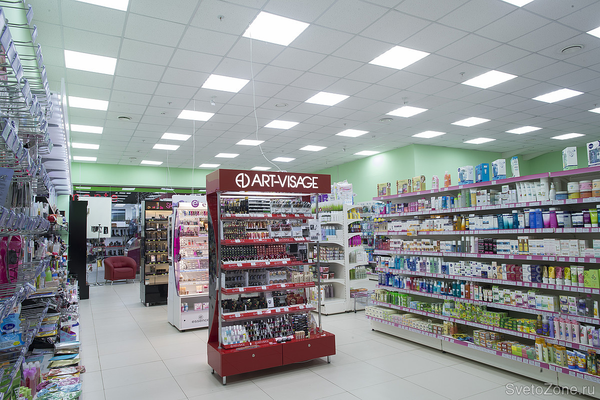 В проекте освещения одного из магазинов федеральной сети «Крем», расположенного в ТЦ «Юбилейный», использованы светильники серии А070, мощностью 36 Вт и цветовой температурой 6500 К. Общее количество светильников, задействованных в проекте, составляет 80 шт. |