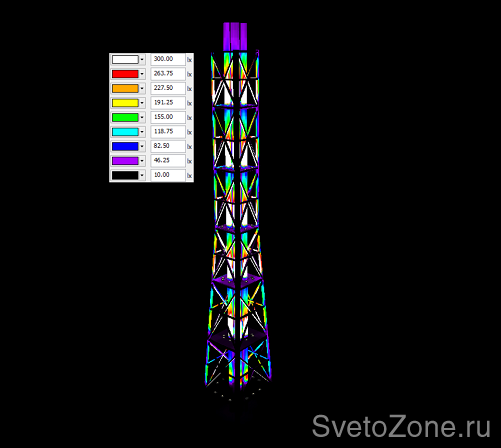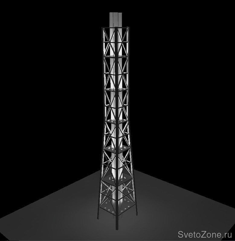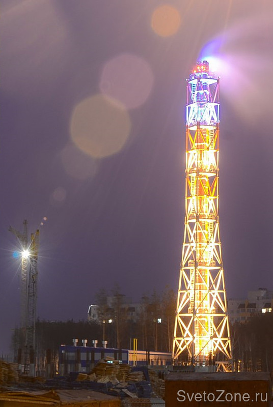 Освещение трубостойки реализовано в несколько уровней с площадок обслуживания прожекторами SBP Ypsilon/C.