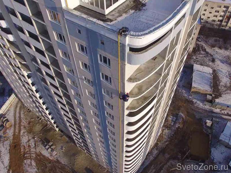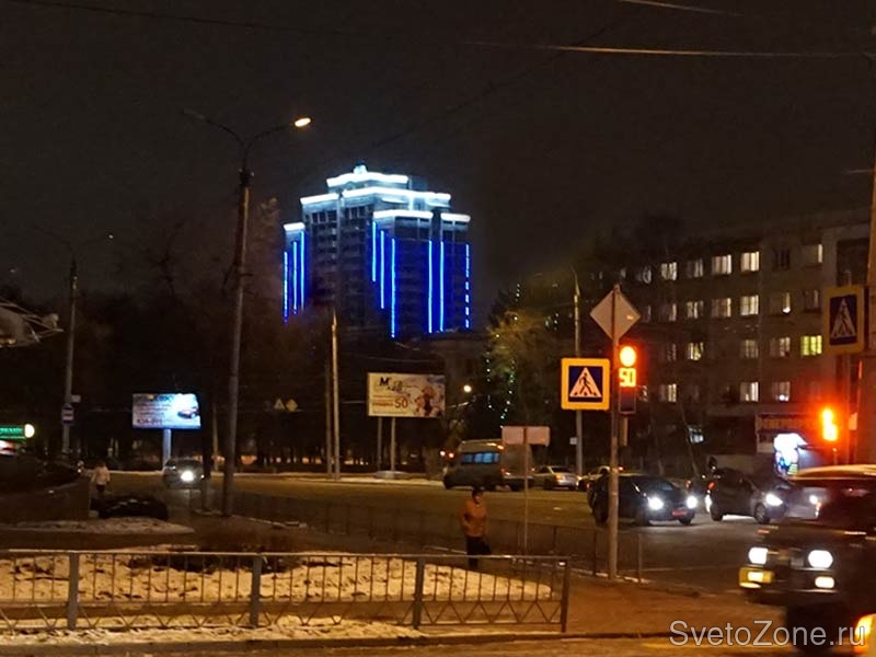Компания HTF Светодиодное освещение внесла огромный вклад в преображение домов и улиц во многих городах России, но участие в данном проекте стало для нас особенным бесценным опытом. Нам очень приятно было стать первой компанией в городе, которая реализовала архитектурную подсветку жилого дома, а не административного здания. Монтировали светодиодное оборудование промышленные альпинисты на высоте 60 метров. |