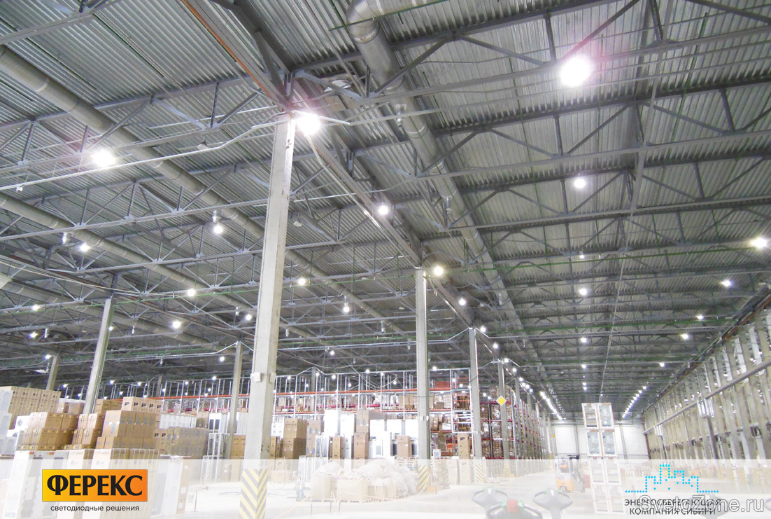 В новосибирском распределительном центре «ЭЛЬДОРАДО» традиционное освещение заменили на светодиодное. 968 светильников российской марки «ФЕРЕКС» за год сэкономят более 10 000 000 руб.