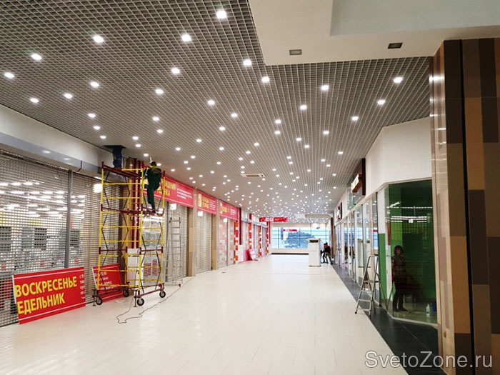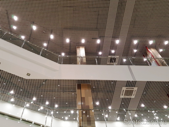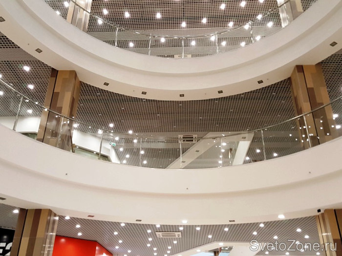 Для освещения общих помещений и пространств "ТРЦ Академический" применены оригинальные светодиодные светильники серии "ГРИЛЬЯТО ДОМИНО".