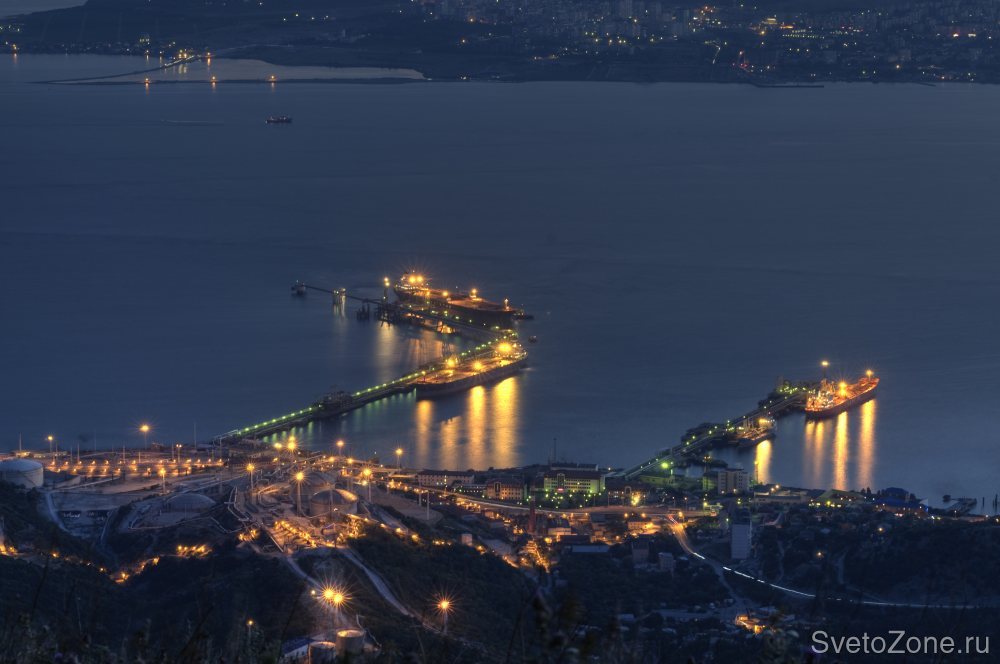 Архитектурная подсветка административного здания нефтяного терминала "Шесхарис". Данный проект был выполнен в срок, при этом были учтены все пожелания заказчика. |