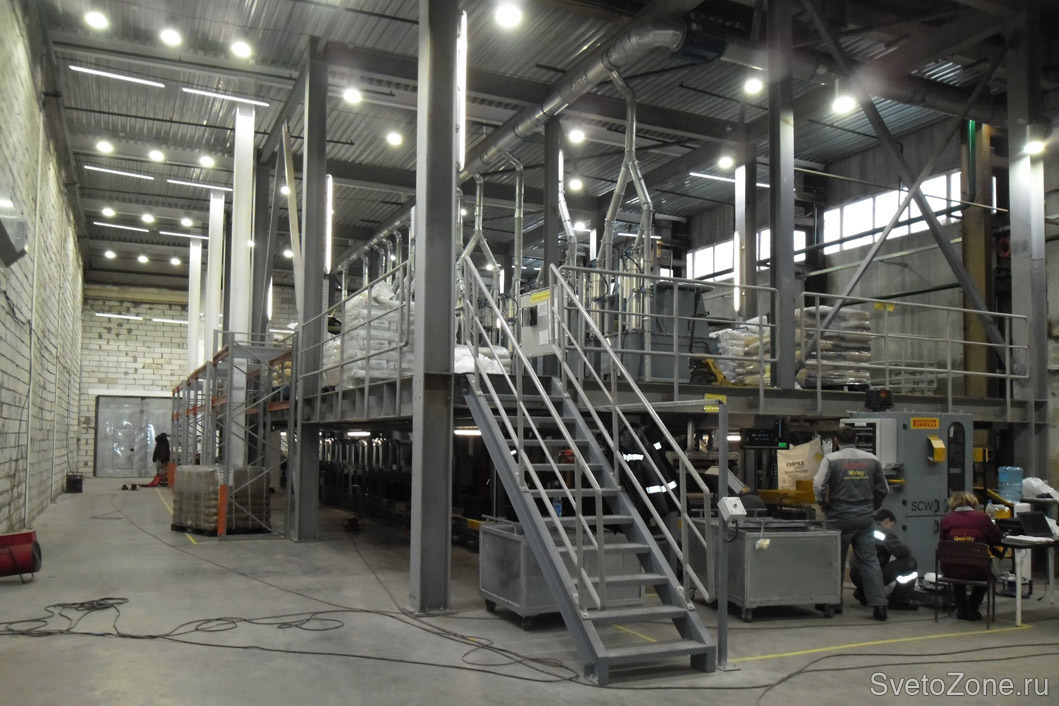 Решение по организации светодиодного освещения складских и производственных помещений было принято больше года назад. На замену светильников с люминесцентными лампами на светодиодные ушло несколько месяцев. Поставщику оборудования ООО «ЭЛДИ» и компании «Центр Монтаж», проводившей монтаж, необходимо было реализовать проект без помех для производственного процесса. Оборудование меняли постепенно. Основную часть поставленного оборудования составили линейные светильники серии ДСО разной мощности. В цехе вулканизации применили комбинированное освещение: линейные модели ДСО и светильники «бочонки» серии ДСП. В целом на освещение объекта потребовалось полгода.