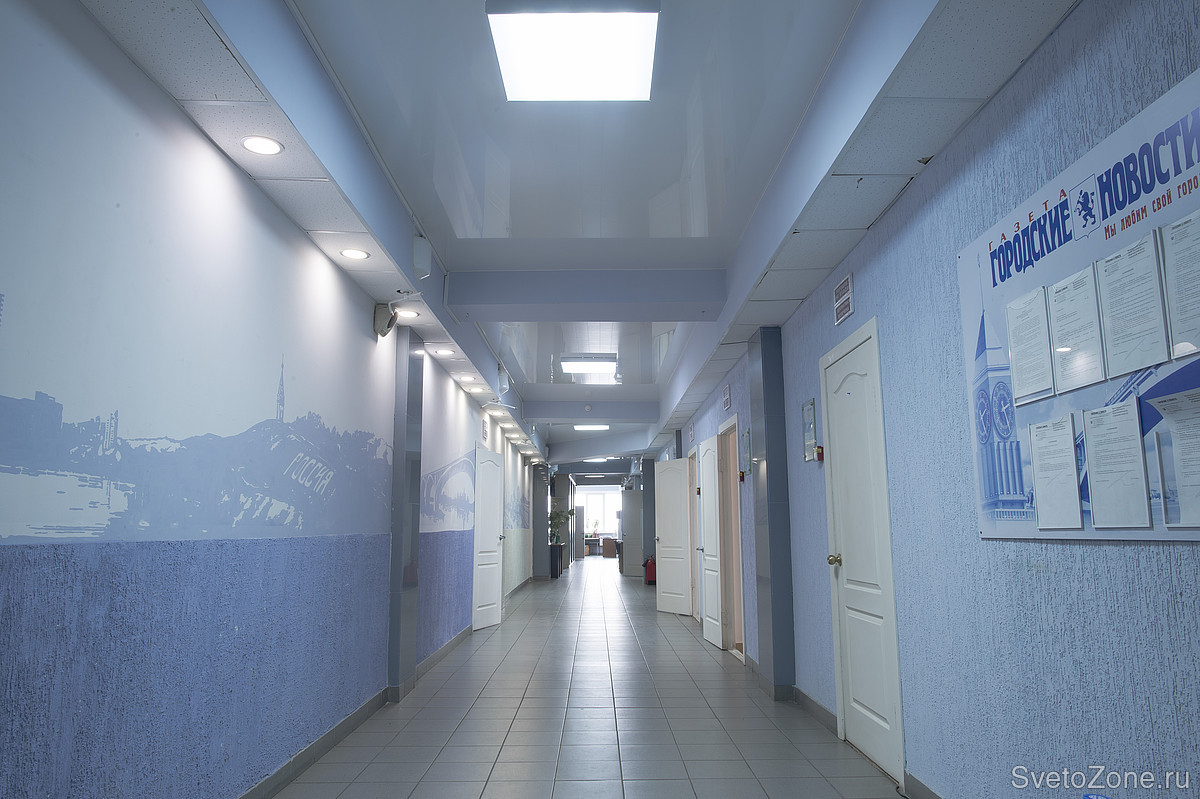 Замена устаревших светильников на светодиодные VARTON для оптимизации расходов редакции на коммунальные услуги, а так же для обеспечения равномерного освещения в коридорах без вредной для глаз пульсации.