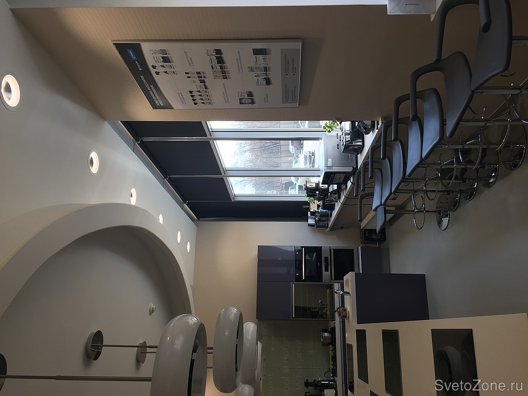 Ситуацию исправили применив в шоу-руме встраиваемые светодиодные светильники серии «ДАУНЛАЙТ».