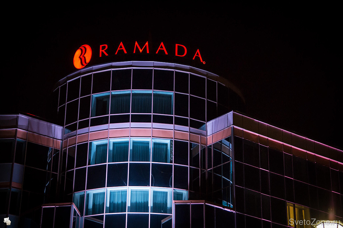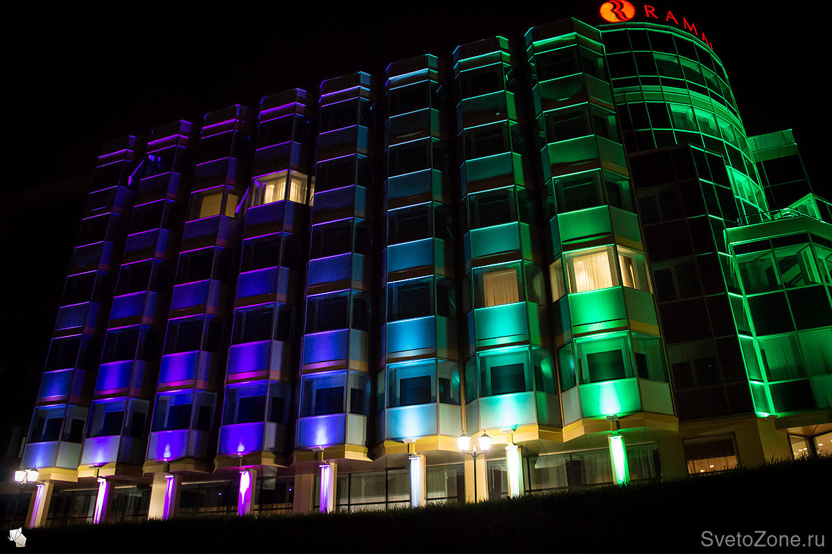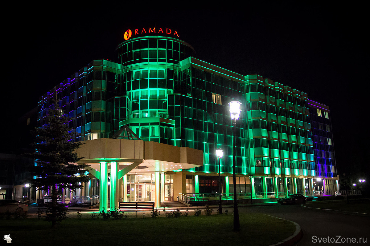 Выполнение архитектурной подсветки здания отеля RAMADA.