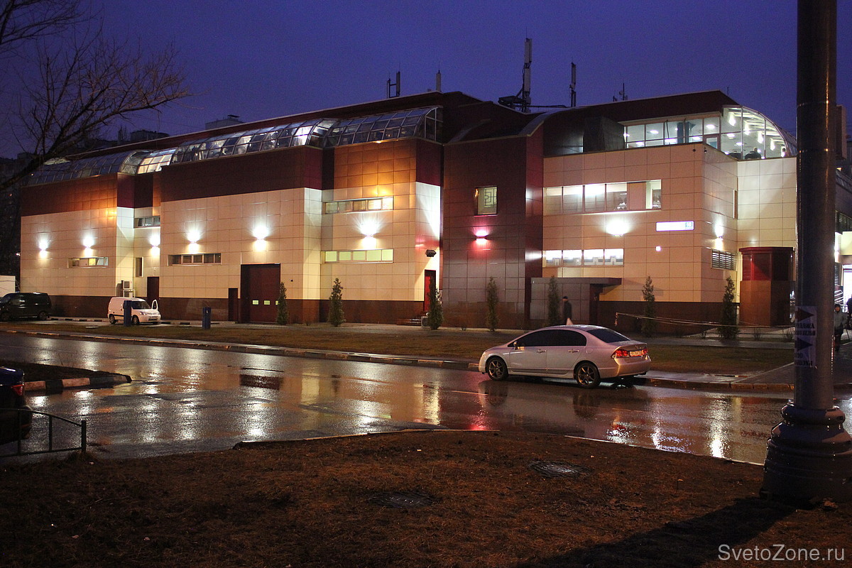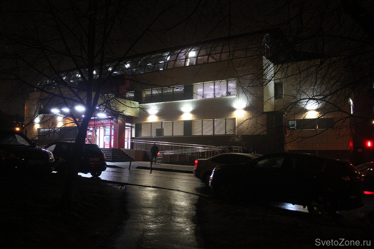 Компания «Икслайт» реализовала проект архитектурного освещения ТЦ «Евромаг Эстейт», расположенного в Москве, в районе метро «Марьино». Новая система успешно выполняет две ключевые задачи: эффектно подсвечивает фасад реконструированного здания и эффективно освещает пешеходные дорожки, ведущие к нему.