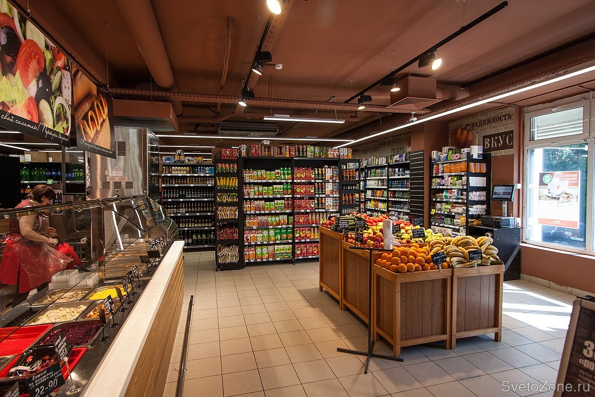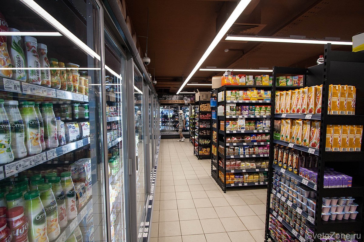 В результате проведенной работы в супермаркете была создана комфортная световая среда: высокий индекс цветопередеачи (Ra>80), стабильность светового потока во времени, отсутствие пульсаций, высокая освещенность (более 500лк) - все это позволяет покупателям легко ориентироваться в пространстве магазина, выбирать необходимые продукты из широкого яркого ассортимента представленного на полках. |