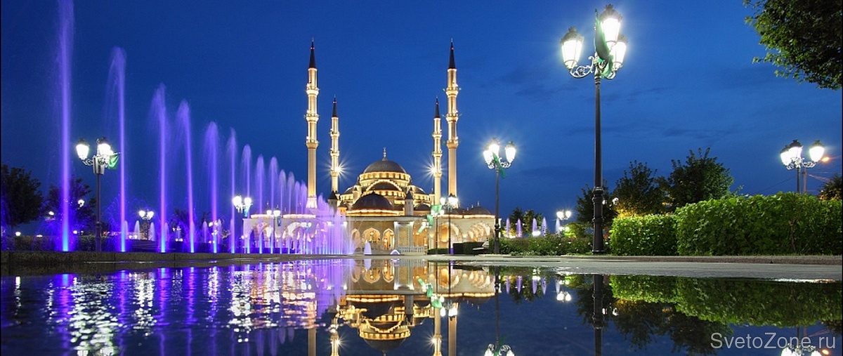 «Сердце Чечни» — крупнейшая в России и одна из самых больших мечетей Европы и мира. Величественная мечеть располагается на живописном берегу реки Сунжи, посреди огромного парка, в котором насчитывается более пятидесяти разновидностей деревьев.