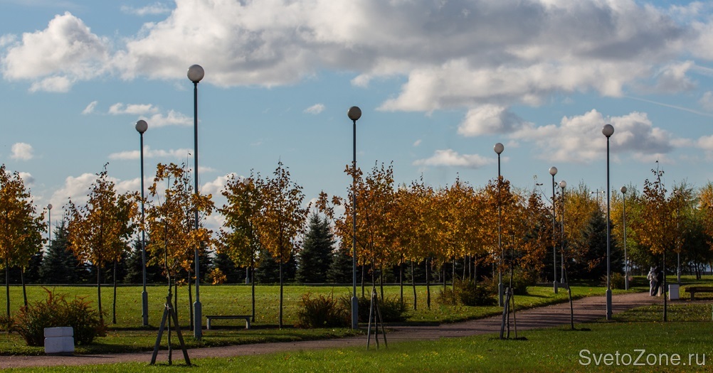При проектировании данного объекта основной задачей было не только осветить парк, но и создать эстетичное парковое освещение удобное как в эксплуатации, так и в обслуживании.