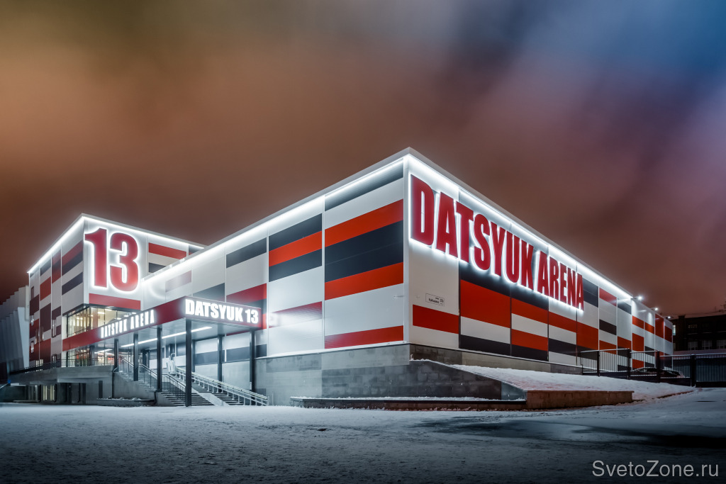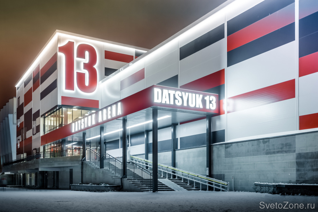 Светотехническая компания «МТ Электро» завершила работы по световому оформлению фасадов новой ледовой арены DATSYUK ARENA, которая расположена на территории стадиона «Юность». Проект включил в себя статическую градиентную подсветку верхнего периметра здания, функциональное освещение входной группы индивидуальным световым коробом и создание контурно-световых объемных букв совместно со специалистами рекламной компании. Торжественное открытие арены состоялось в августе текущего года, работы выполнены на высоком профессиональном уровне и в кратчайшие сроки.