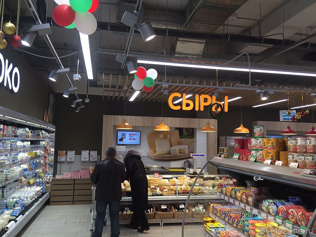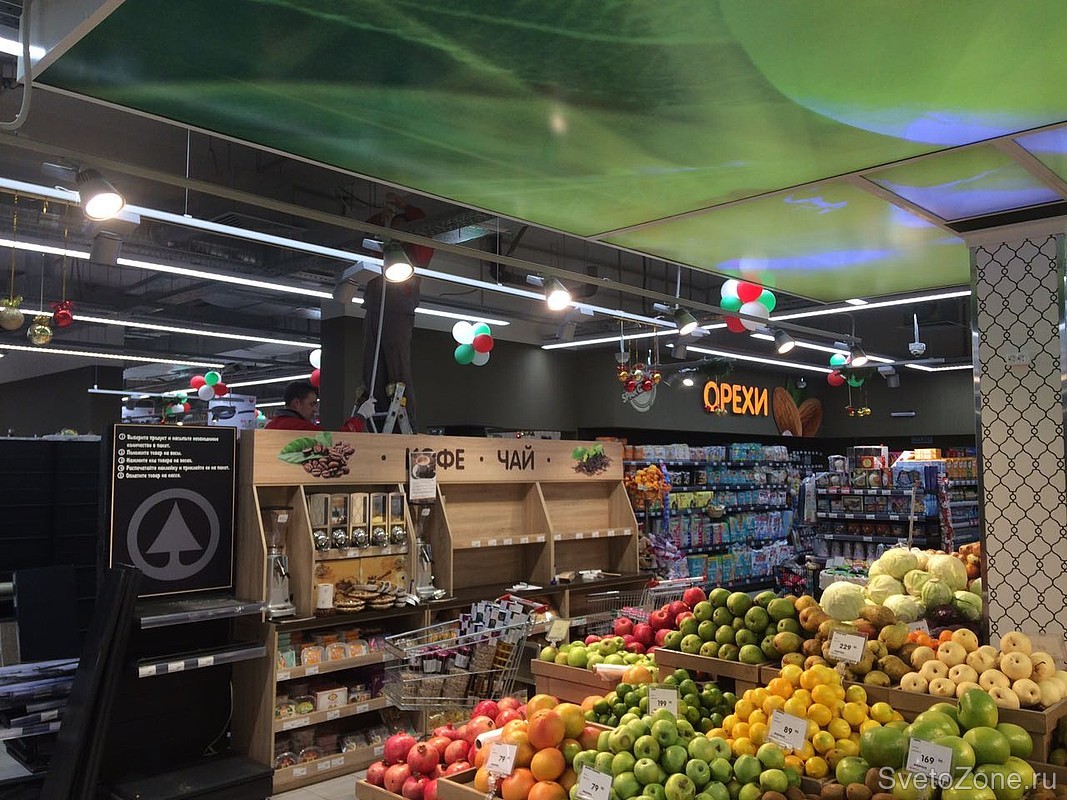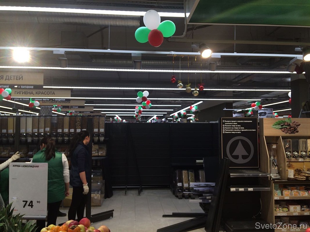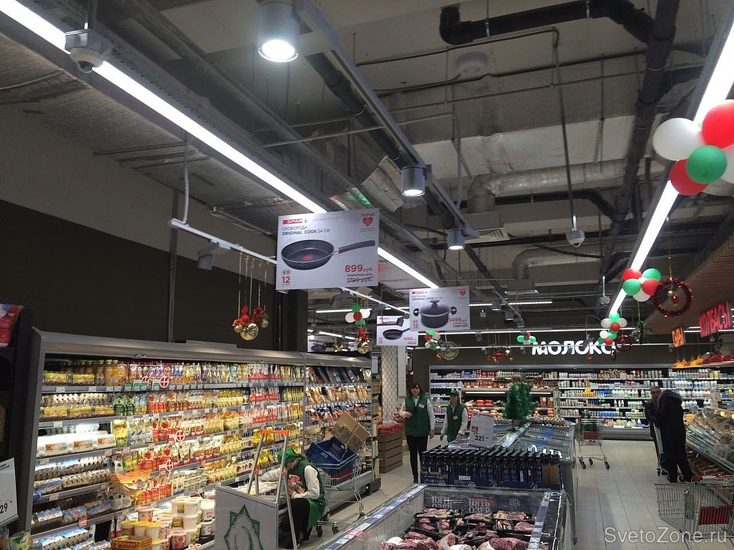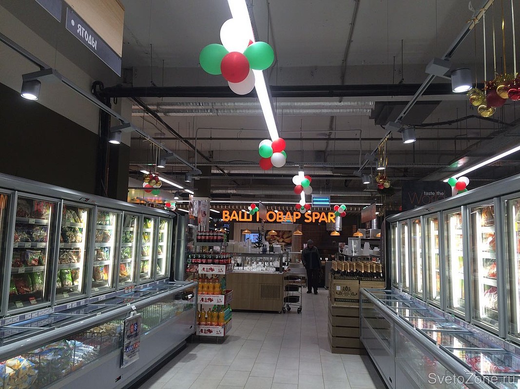 Освещение светодиодными светильниками российского производства "ФЕРЕКС" нового гипермаркета нидерландской сети SPAR в Казани.