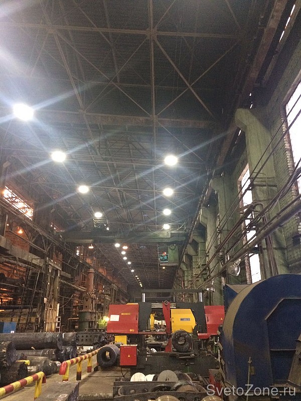 В Кузнечно-прессовом цехе ООО «УМЗ» была проблема с системой освещения. Причина — высокая температура воздуха на высоте подвеса светильников. И, соответственно, все энергоэффективные светильники, которые устанавливались в этом цехе, очень быстро выходили из строя после начала работы. В связи с этим приходилось применять светильники с лампами ДНаТ 600Вт. Они выдерживали температуру 80 градусов, но были и существенные недостатки в их работе: желто-красный свет и пульсация, которые создавали огромное неудобство для работы сотрудников.