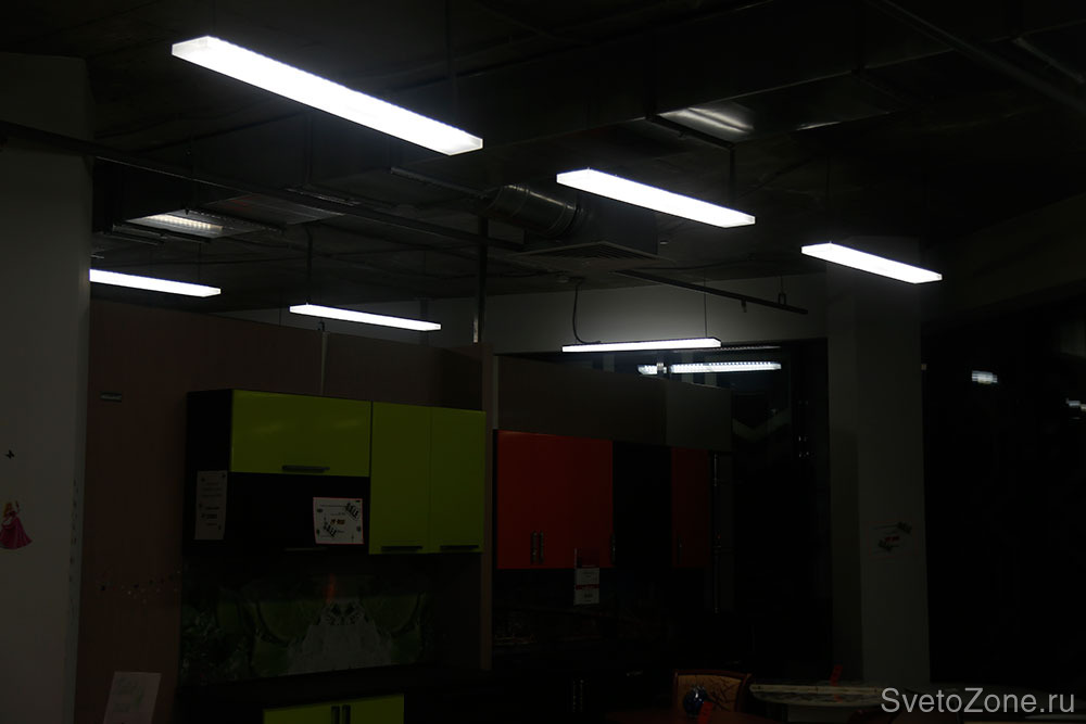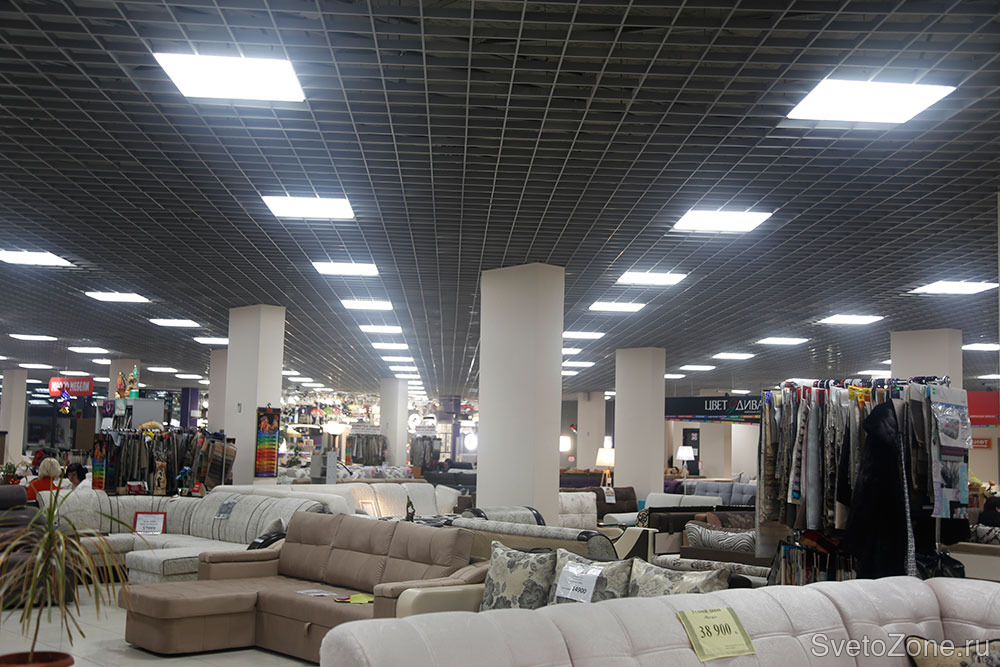 Освещение Мебельного центра в Казани (Татарстан) светодиодными светильниками LEDUS.