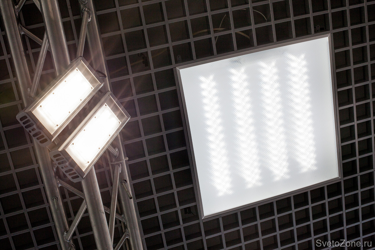 До замены осветительных приборов в помещении мотоцентра были установлены люминесцентные светильники ЛПО 4х18 и прожекторы старого поколения. В качестве альтернативы были выбраны светодиодные cветильники для установки в потолки "грильято", 40Вт завода SVT и универсальные прожекторы 59°, 64 Вт завода Viled. В общей сложности было заменено 106 светодиодных светильников и 42 прожектора.