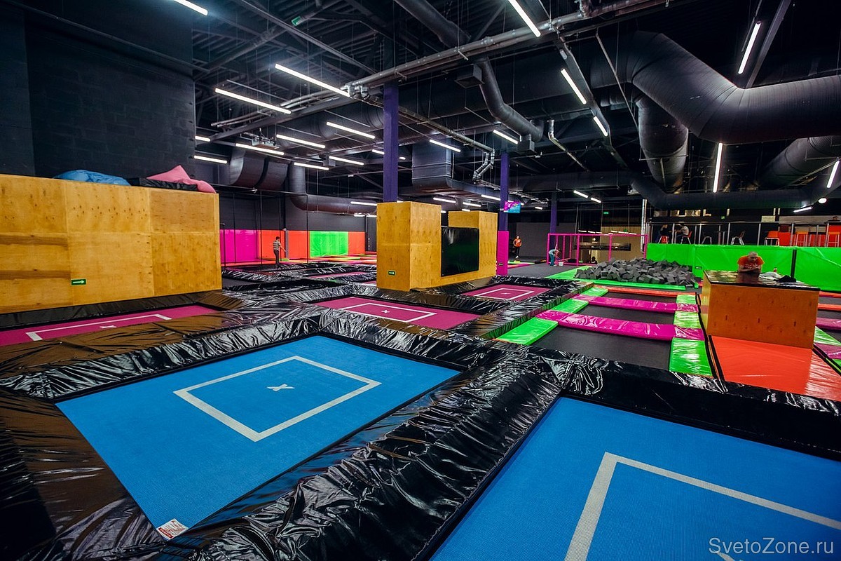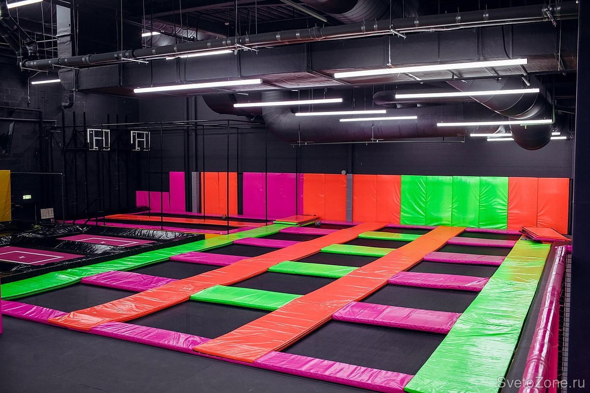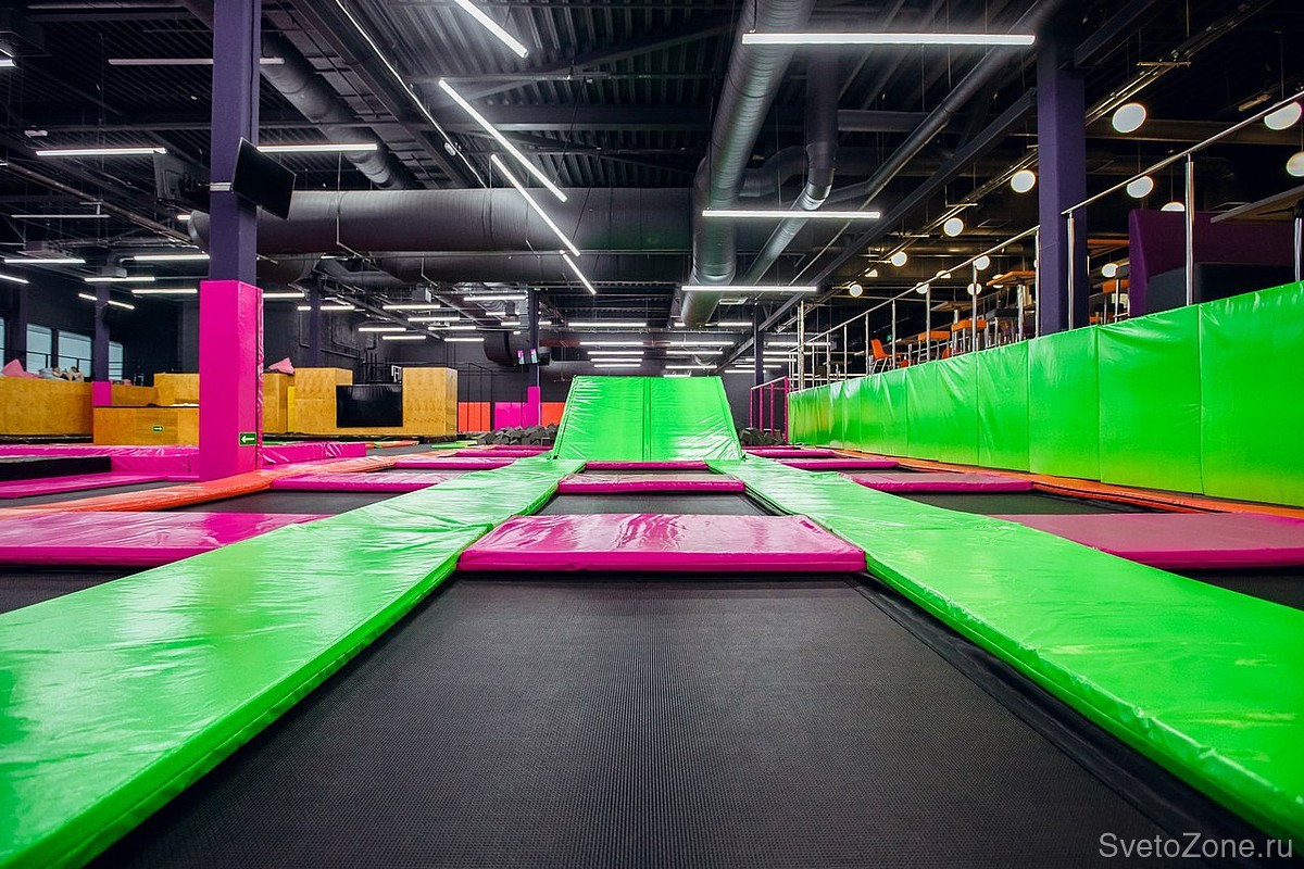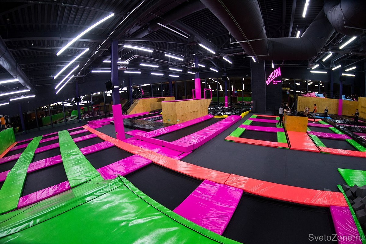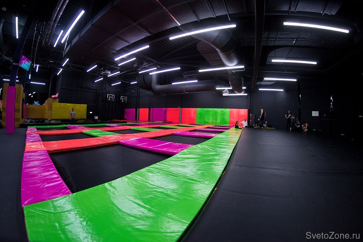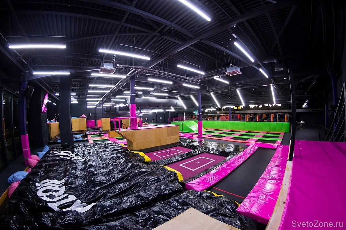 Проектирование, поставка и шеф-монтаж светодиодных светильников для сети батутных парков RAZGON в Санкт-Петербурге, Нижнем Новгороде, Екатеринбурге и Чебоксарах.