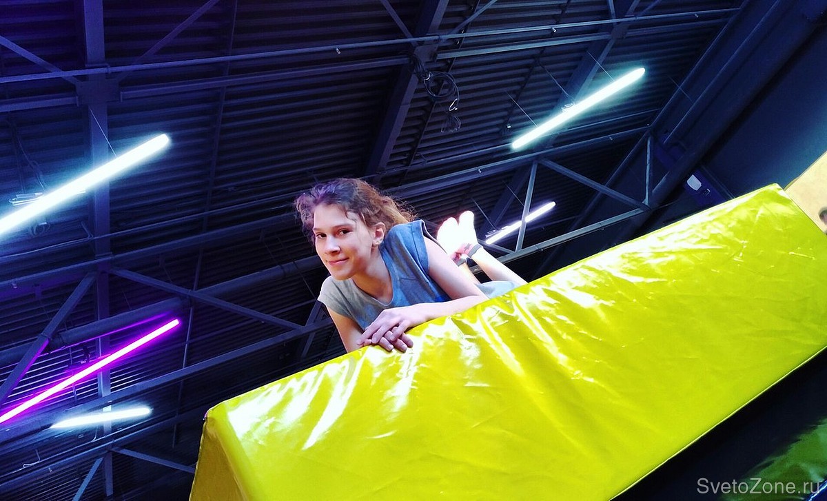Для освещения петербургского батутного парка площадью 3000 кв.м. были использованы индивидуально изготовленные линейные светильники на базе профиля Round-D60 с системой "умного" света.
