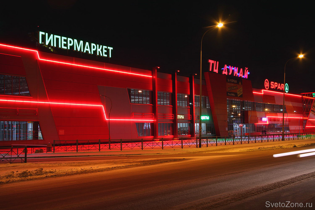 В конце 2016 г. на фасаде торгового комплекса «Дунай» была установлена система освещения компании IntiLED. Новый ТК с гипермаркетом SPAR в качестве якорного арендатора расположен на Дунайском проспекте в г. Санкт-Петербург.