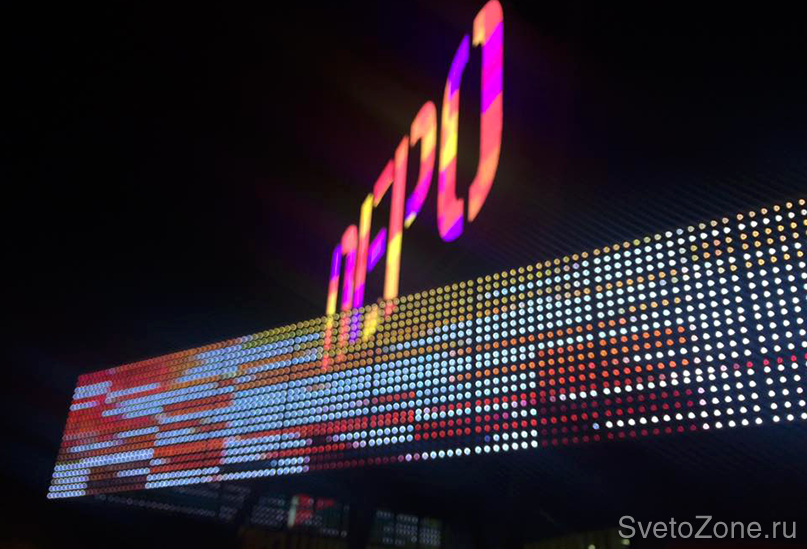 Медиафасад представляет собой угловую конструкцию, которая состоит из перфорированного фасада и интегрированных в него индивидуально-управляемых модулей-пикселей с синтезом цвета RGB. Общее количество светоточек - 4000 шт. Геометрию медиафасада продолжает окантовка световой графикой продолжающегося архитектурного элемента, на котором впоследствии будут расположены вывески арендаторов.