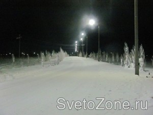 Светильники РУС-100 с линзой LPP-5. Высота опор - 12 метров. Освещенность на оси - около 25 Лк.